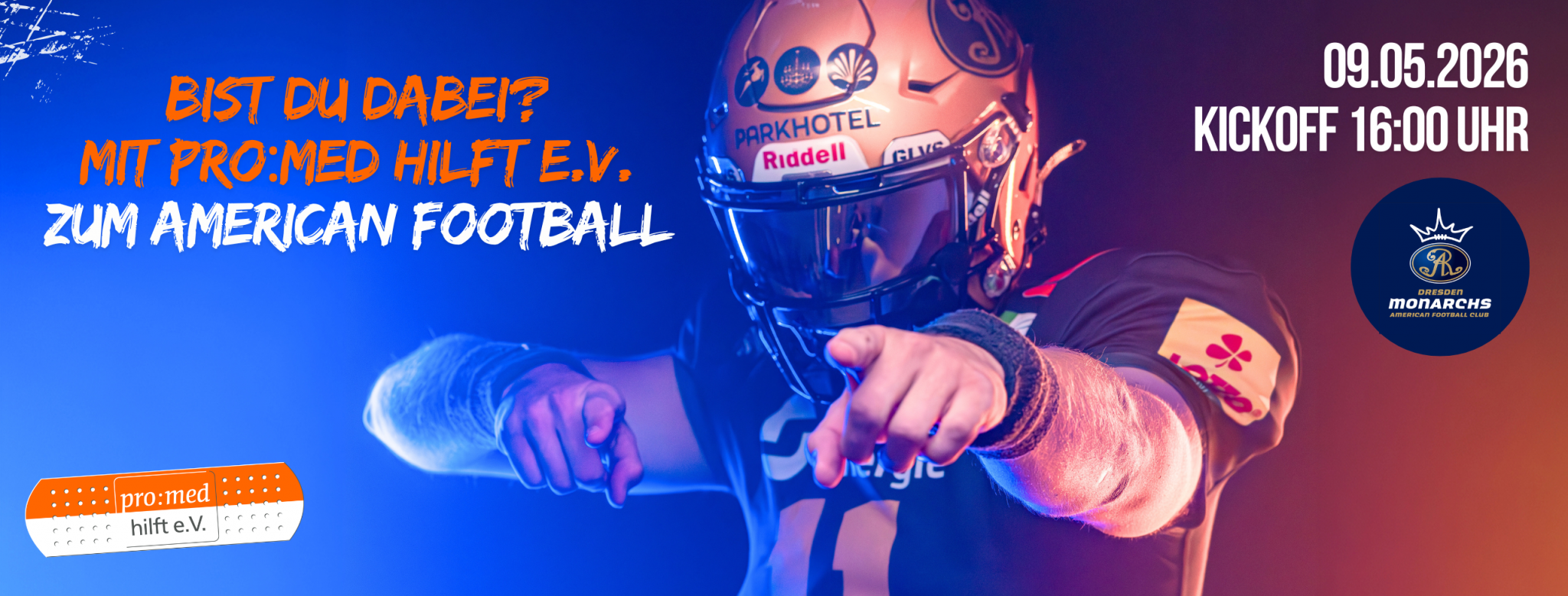 Gemeinsam zum Kickoff – pro:med hilft e.V. bringt dich kostenlos zum Sparkassen Gameday der Dresden Monarchs!